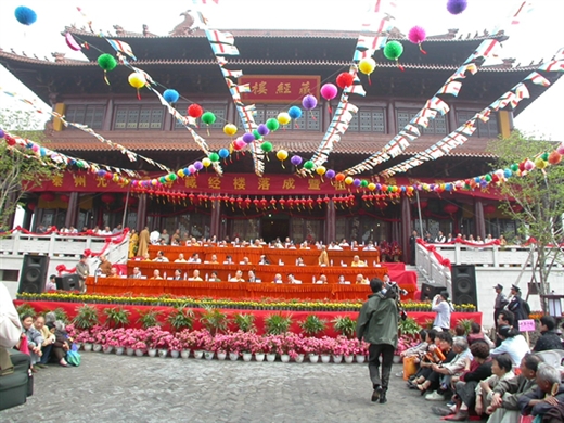 典禮由新任住持禪耕方丈、成一長老及諸山長老共同主持,上香、散花、灑淨、說法,一時香雲繚繞、梵音嘹亮,氣氛顯得無比莊嚴!禪耕住持、泰州市長、中佛協代表、成一長老等都在典禮上致詞,讚歎參予修復者無量功德,並祝福復建工程成功,讓佛光普照,國泰民安!