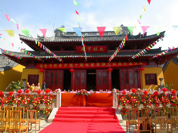 觀音禪寺恢復工作,由營溪鄉第十二、十三屆人民政府總體策畫、實施,海安縣人民政府督導,於西元一九九五年十一月由南通市古典建築安裝工程公司施工興建,於西元一九九七年十一月落成開光。又於一九九八年十月三十日率團舉辦梁皇寶懺法會,帶動當地信眾禮懺、祭祖,諸方民眾,同邀福庇,是為記。