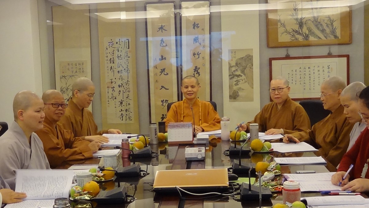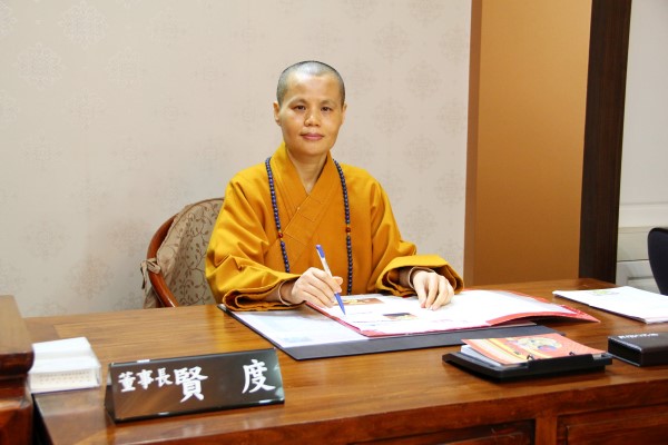 現任董事長 賢度法師 蓮社於民國46年完成了寺廟登記,把原來的私產,變為佛教公產。為了健全組織,又於66年完成了財團法人登記手續,由信徒大會選出了南亭長老及成一、妙然、雲霞四位和尚,及莫淡雲、張少齊、王培基等三位居士為董事,組成董事會,並選出南亭長老為首任董事長。南亭長老於71年9月3日圓寂,當時召開臨時董事會,公推成一和尚代理董事長。73年4月董事會正式改選完成,成一和尚當選繼任本蓮社第二屆董事長。 98年1月14日,召開財團法人台北市華嚴蓮社第七屆第一次董事會議,會中推選成一董事、賢度董事、乘度董事等三位為常務董事,成一董事長以年老體衰為由,堅辭董事長職務,並推薦賢度董事為新任董事長,於會中經全體董事一致通過。於98年2月15日舉行新、舊任董事長交接典禮儀式。 第九屆董事會: 賢度董事長、天演副董事長、天蓮常務董事、自莊董事、天行董事、天聞董事、天悅董事